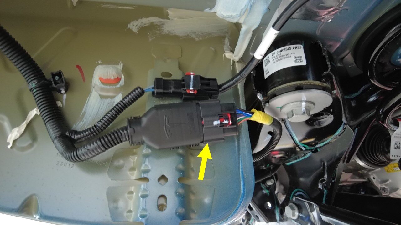 注2 个连接器;首先固定紧急响应回路 (FRL),确认低压电池连接就位,将黑色连接器锁向内推动以固定;完全就位后接合绿色锁片。