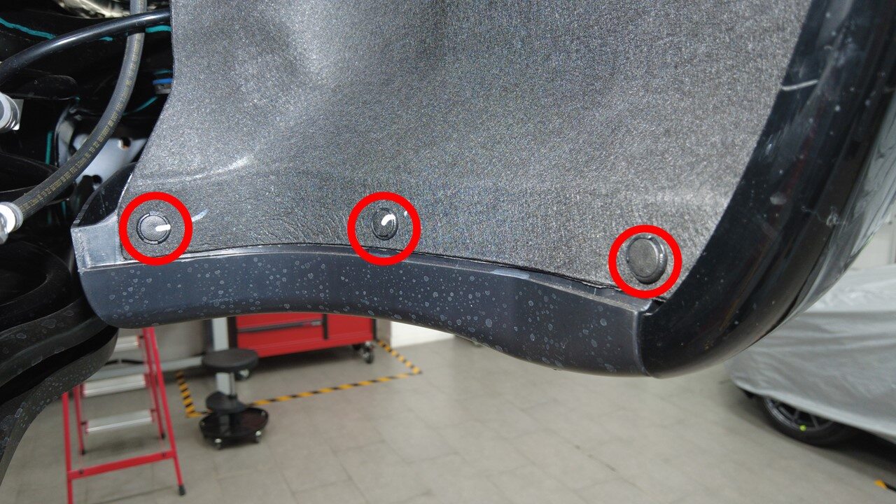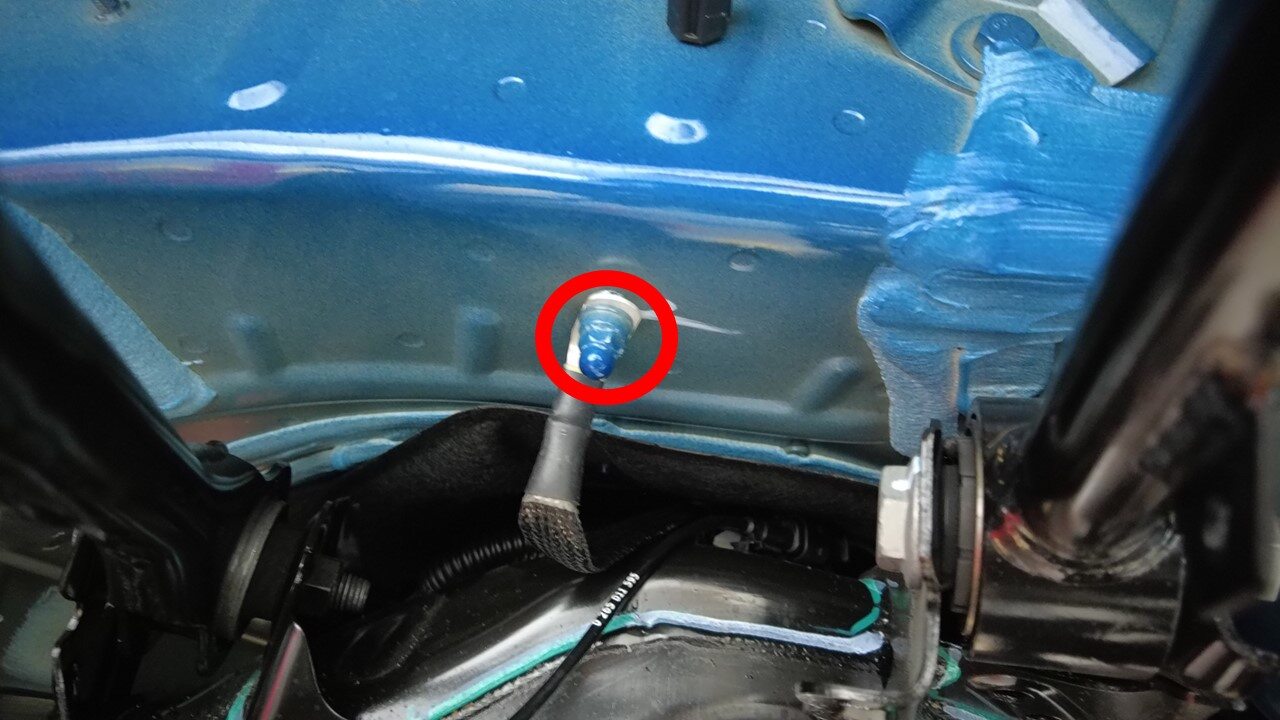 在后扩散器螺栓上涂抹 Loctite 222,然后安装将后扩散器固定到车身的螺栓。