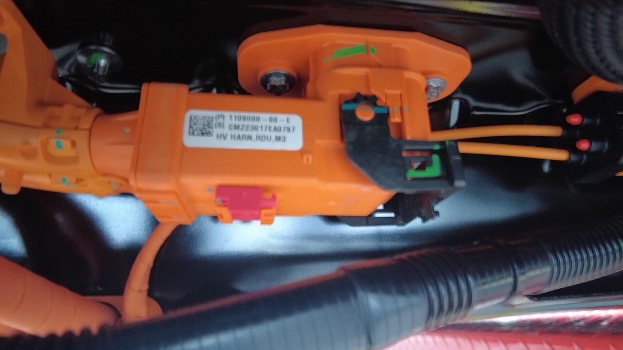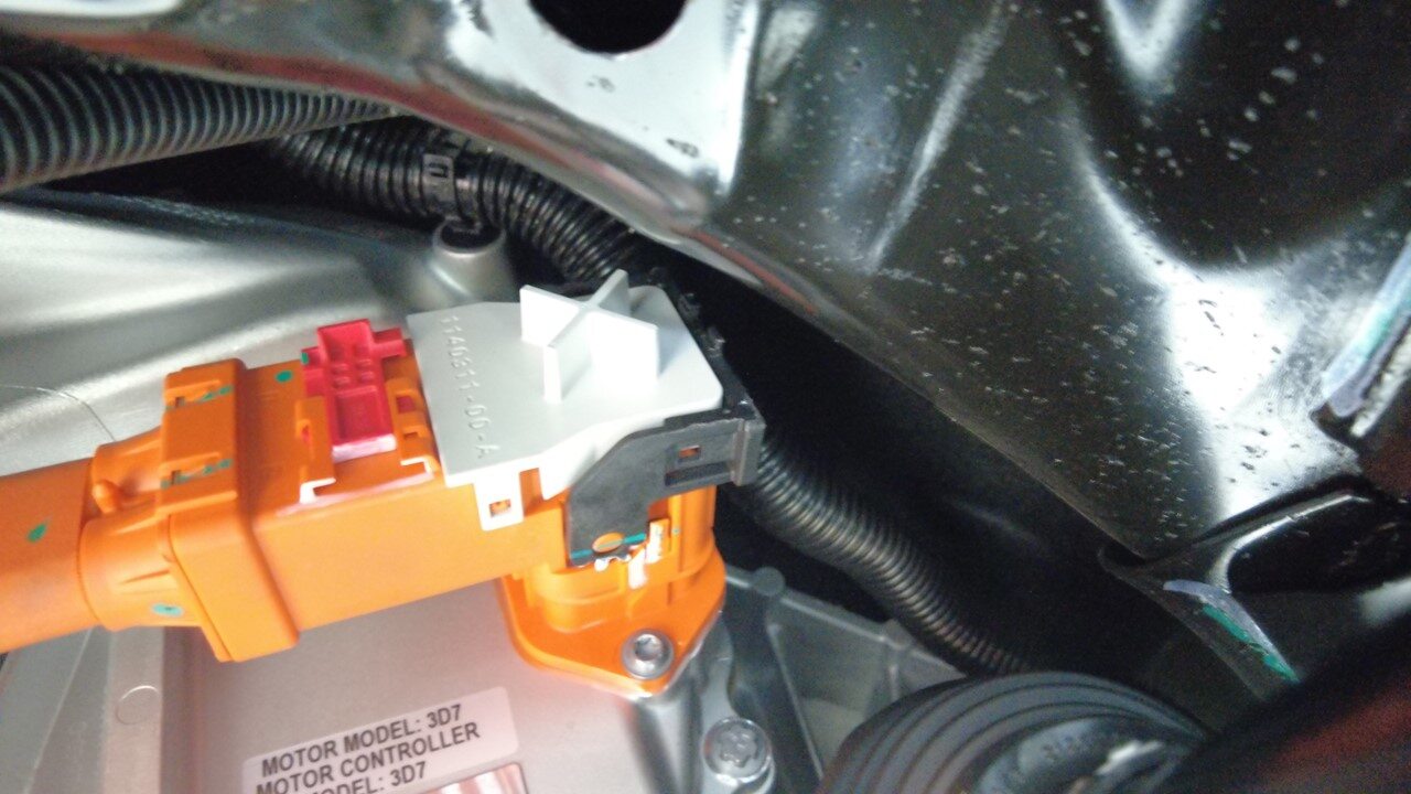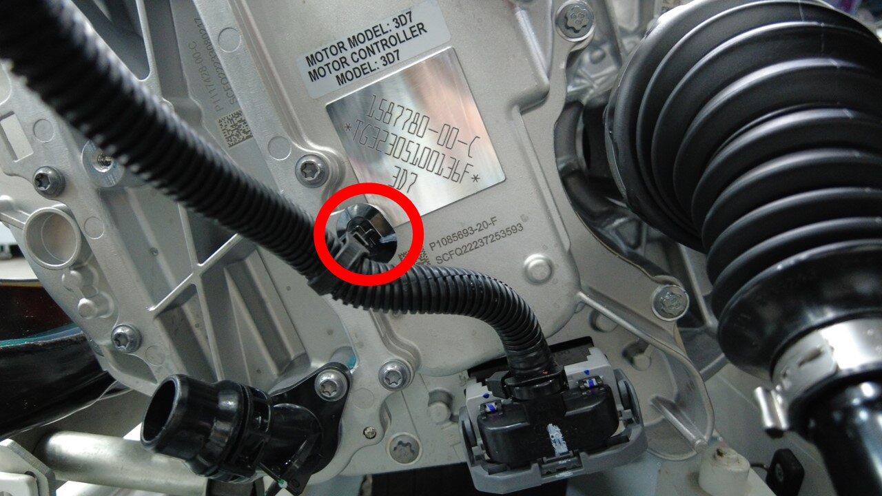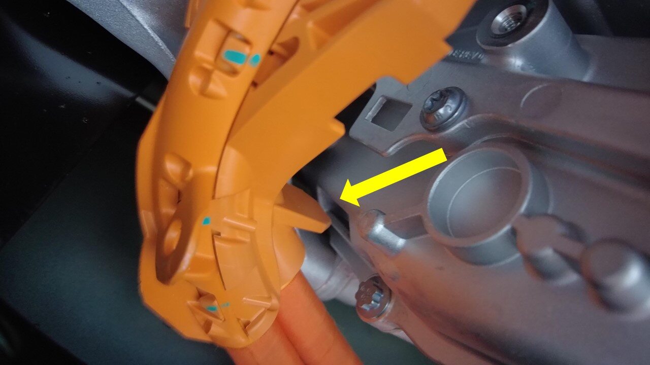 将后驱动电机变流器入口管从后驱动电机高压电缆线束上松开。