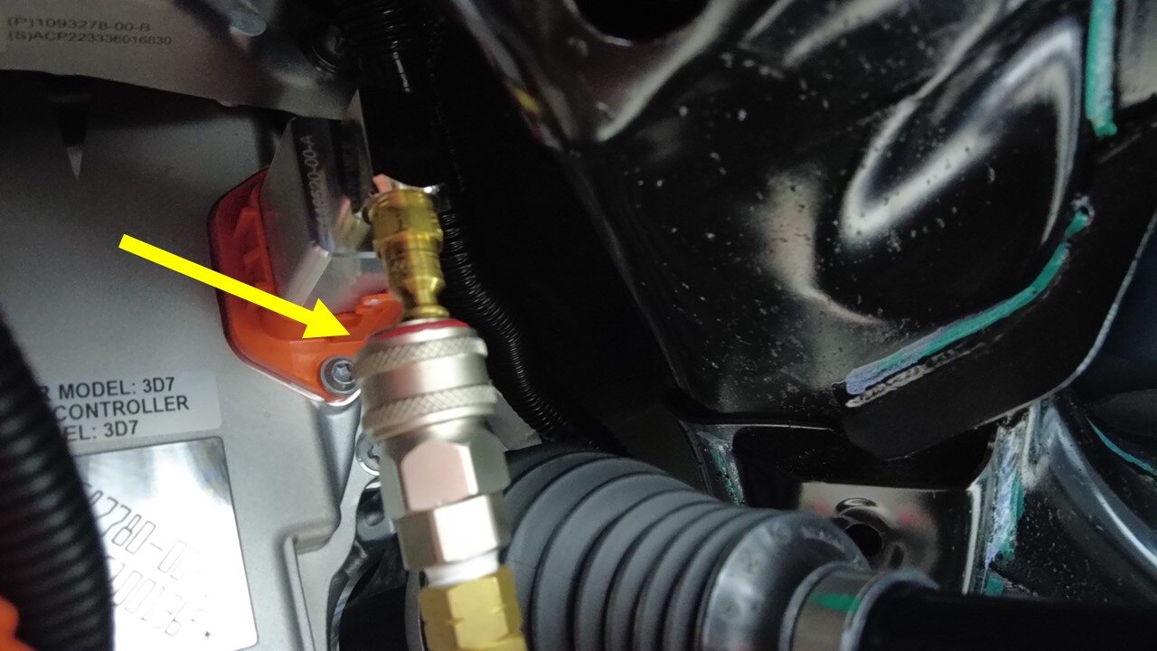 - 缓慢打开冷却液重新加注阀,使冷却液排入冷却液重新加注软管中,待软管中充满冷却液时,关闭阀门。