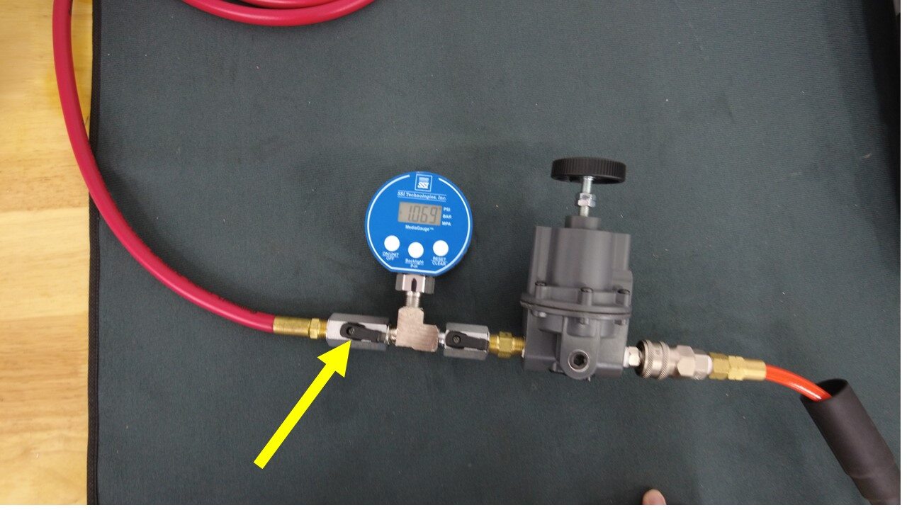 打开进气阀进行以抽真空,真空表趋于稳定后,关紧阀门。
