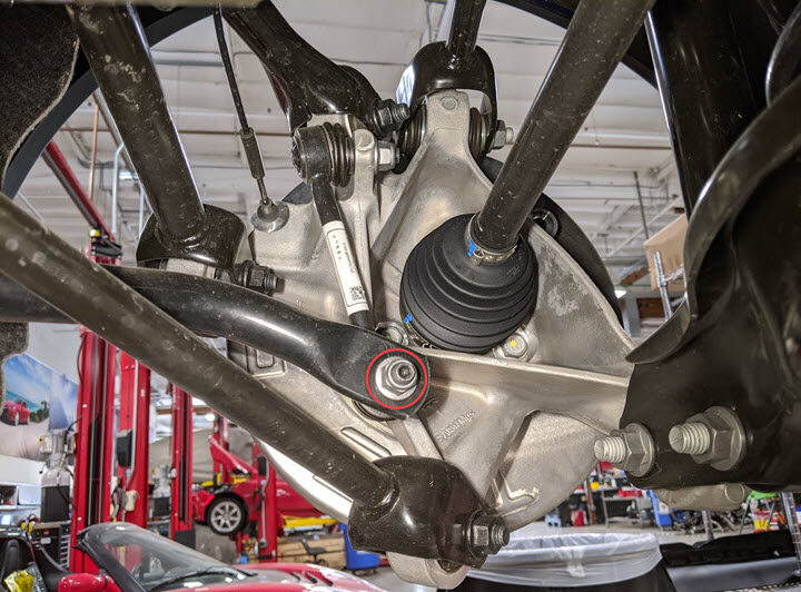 拆下将左后平衡杆末端连杆固定到平衡杆的螺母。