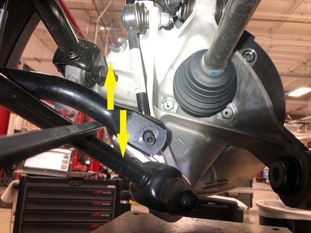 注调整末端连杆,使其与平衡杆对齐;为了获得安装末端连杆的正确角度,还可能需要向上/向下移动平衡杆。