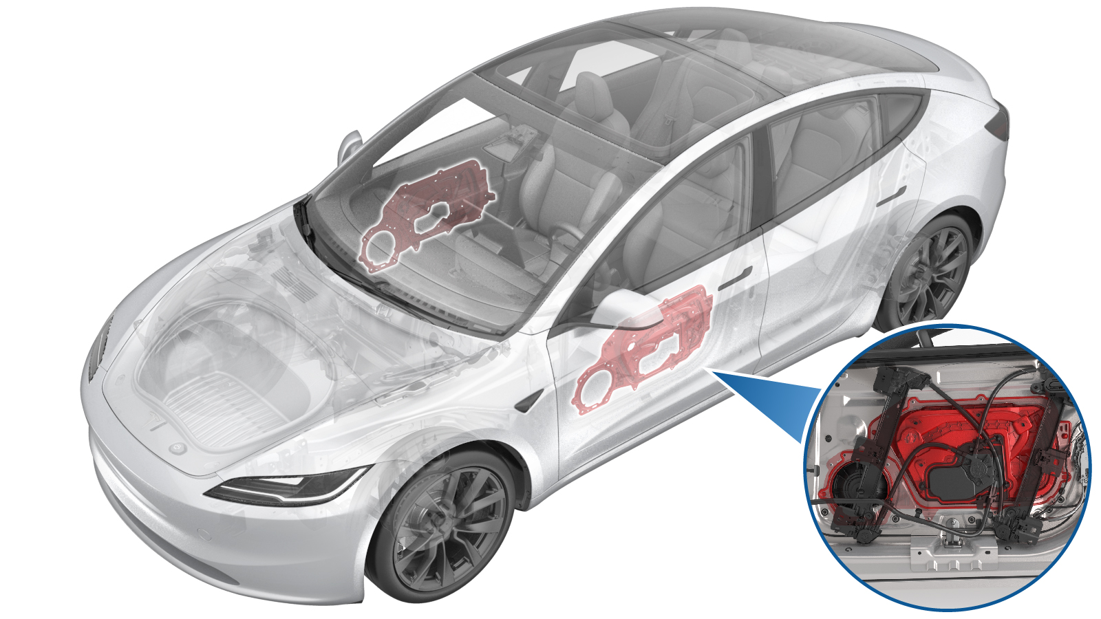 | 将左前车窗电机固定到左前车门封闭板的螺钉(5 个) |