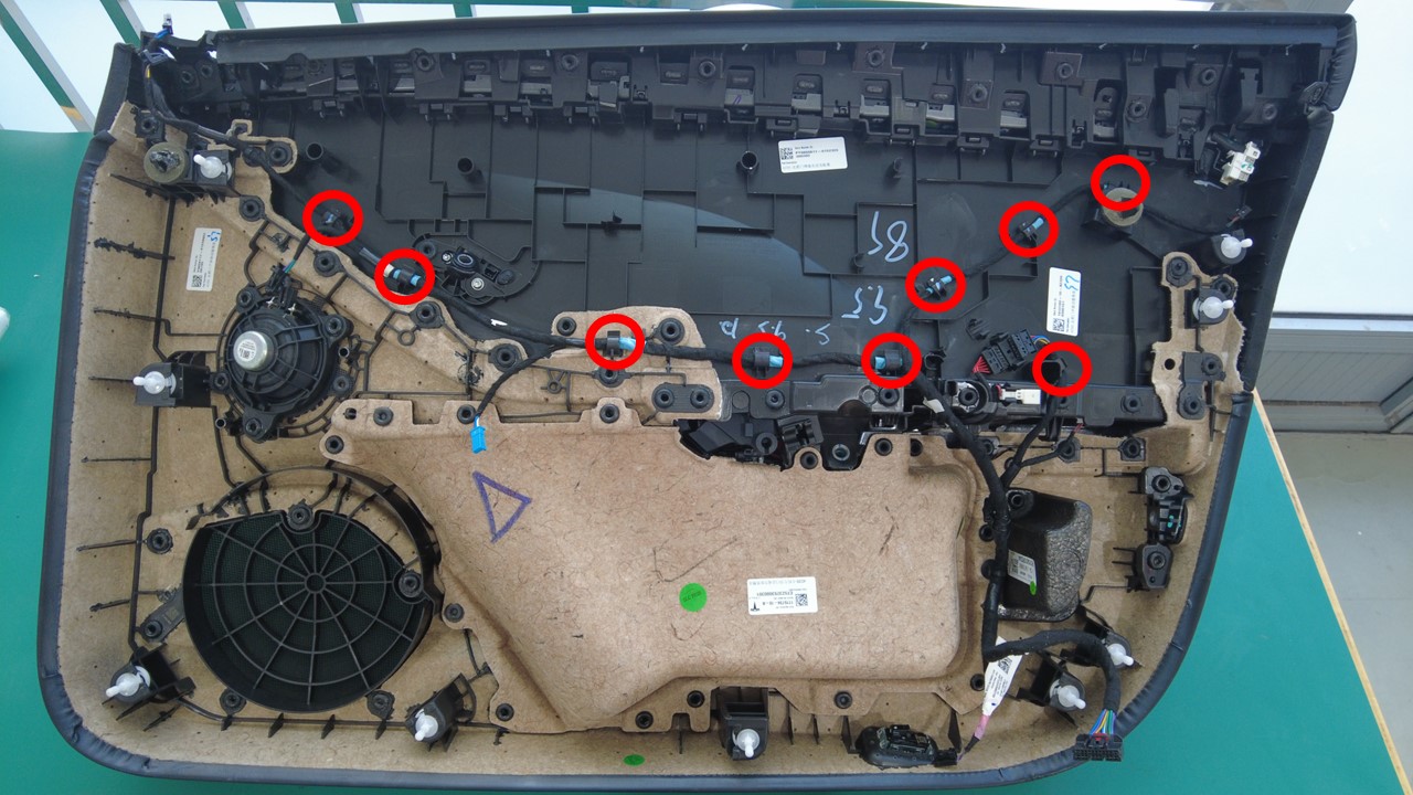 注如果旧车门饰板上的线束状况良好,则可以将其转移到新的饰板上。