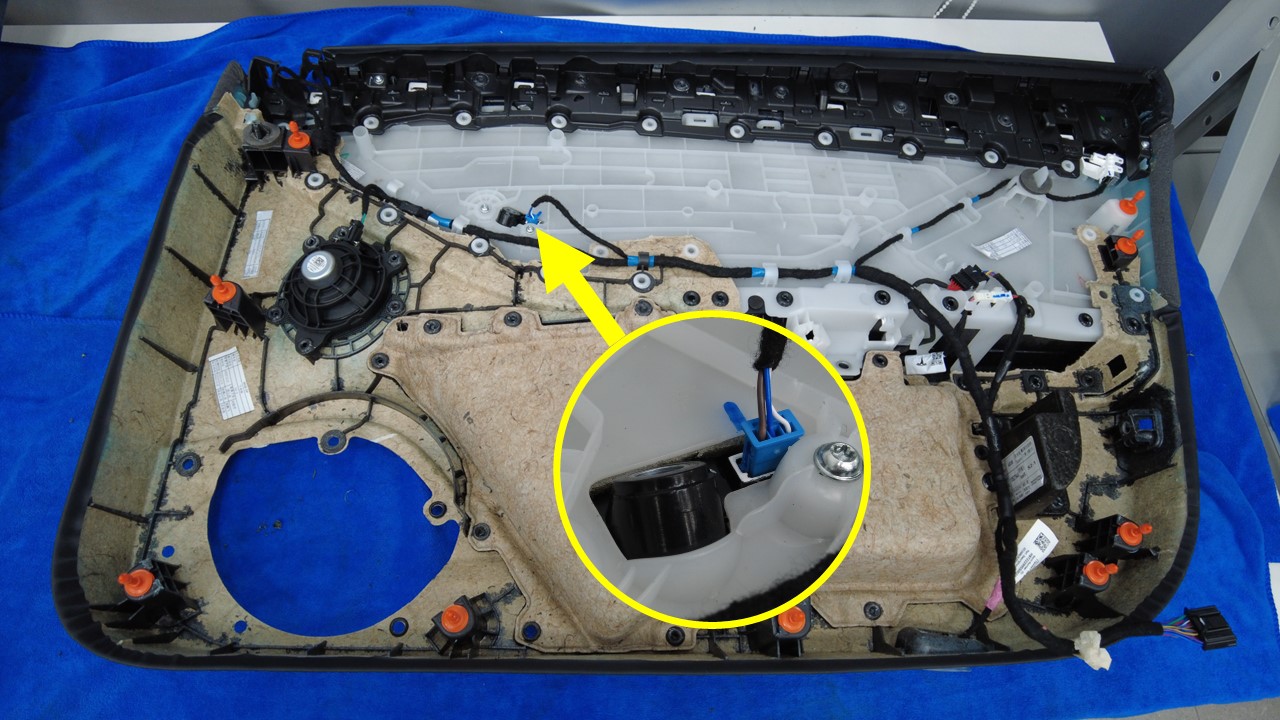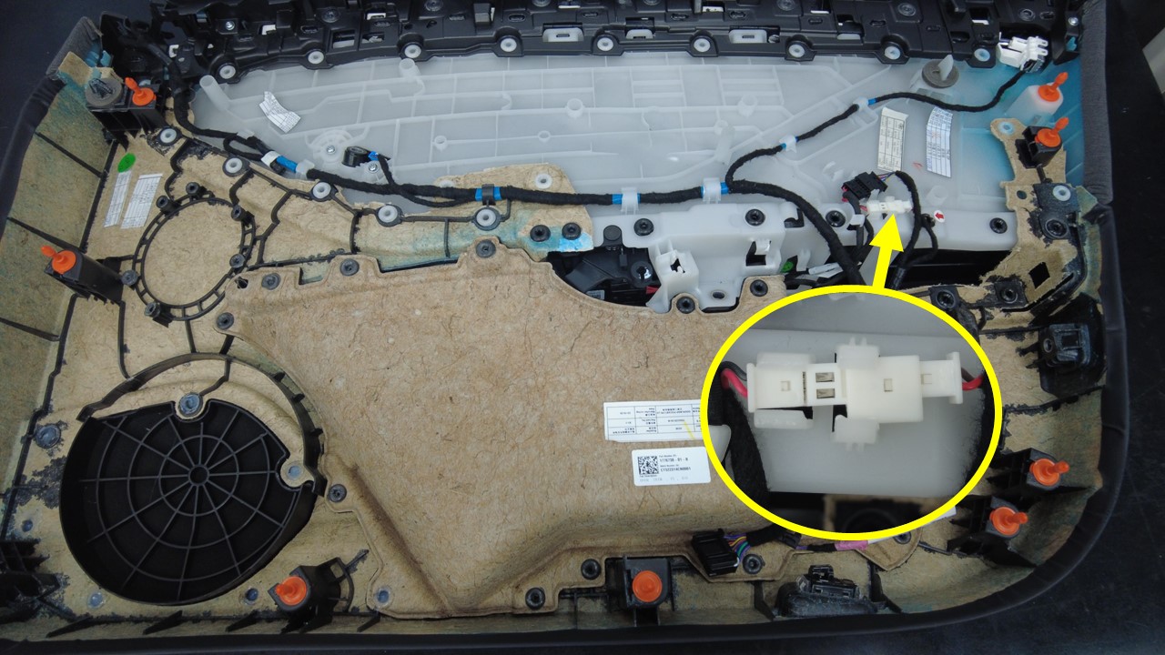 连接车门扬声器连接器。