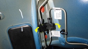 - 将左后制动管连接件放置到车辆上,然后将左后和右后制动管正确放置在连接件上。