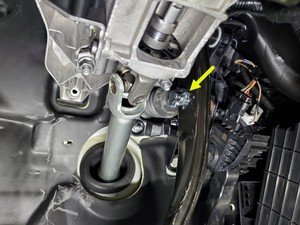 对齐制动踏板与制动助力器杆,然后安装将 U 型夹固定到制动踏板总成上的制动器 U 型夹固定销。