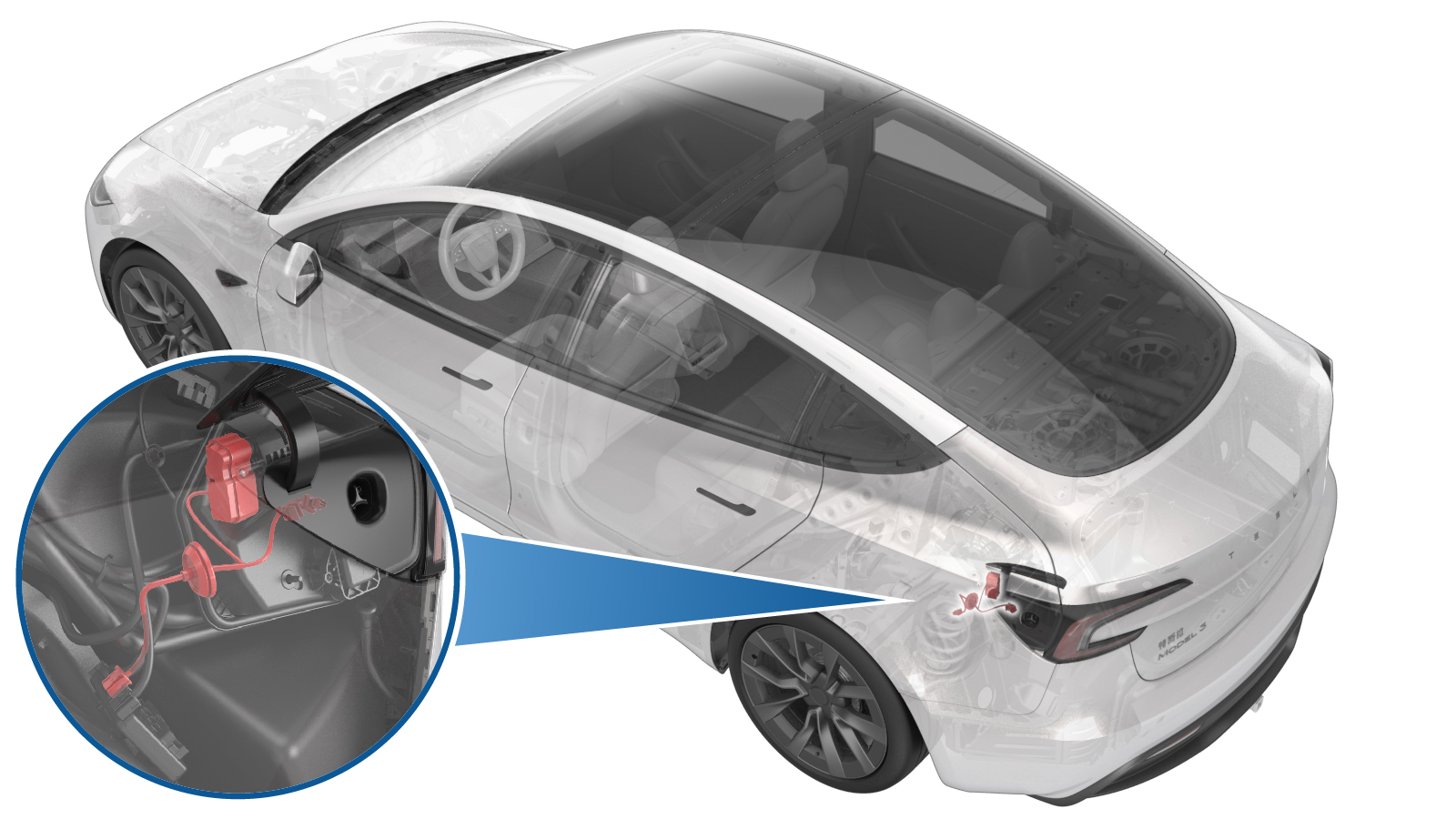 拆卸将执行机构固定到充电接口盖板总成的螺钉(3 个),然后从充电接口盖板上拆下执行机构。