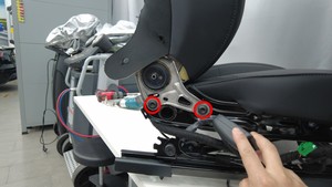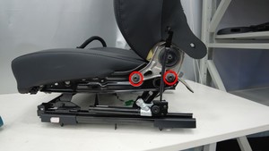 安装新的螺纹胶螺栓和毛毡垫片,将驾驶位安全带预紧装置固定到驾驶位座垫框架。