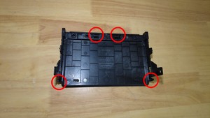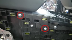 - 拆卸中控台手机托盘。请参阅 电话托盘(螺丝型) ((拆卸和更换)) 或 电话托盘(卡夹型) ((拆卸和更换))。