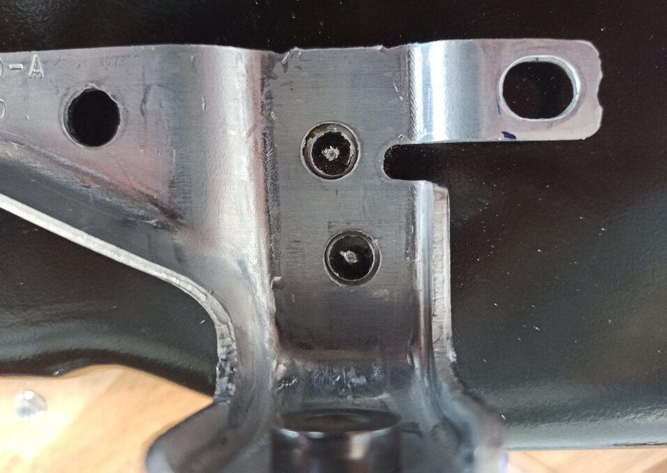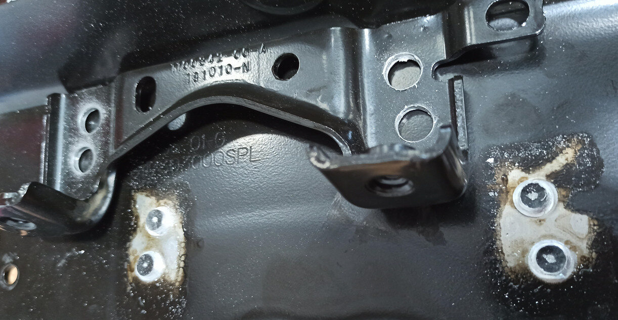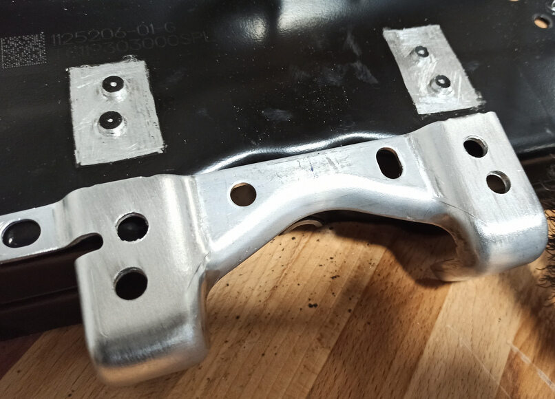 Drill holes in the new skid plate bracket.