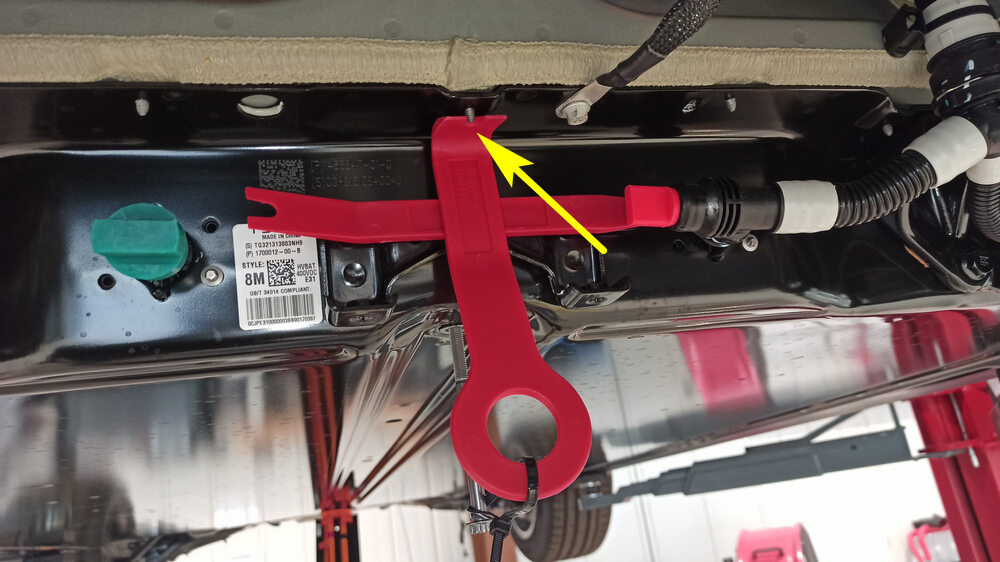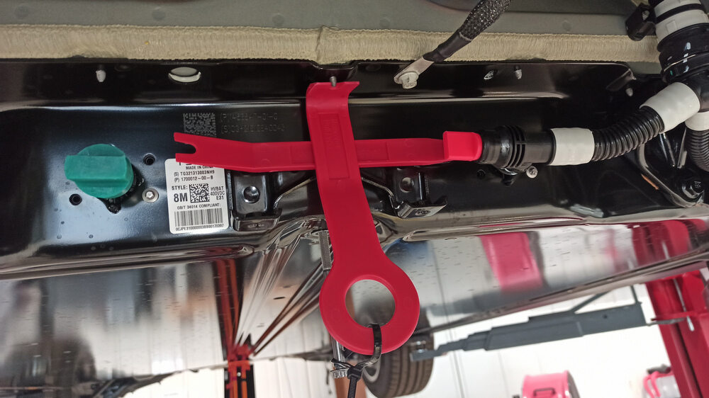 - Remove the masking tape from the HV battery and the skid plate bracket.