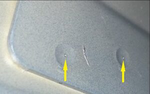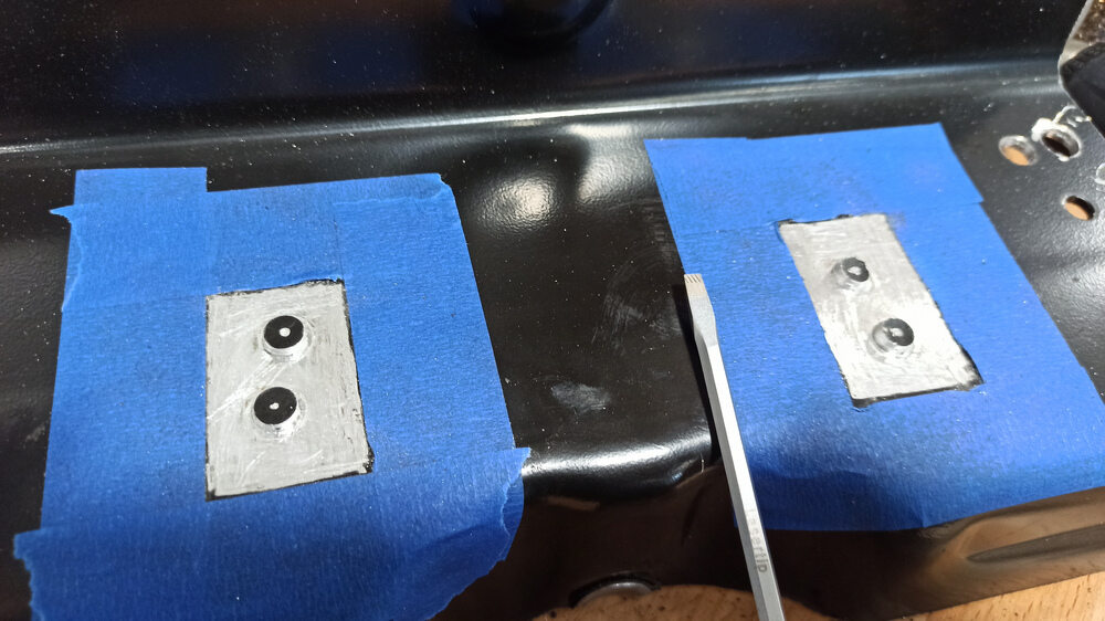 注Use a center punch to create a small dimple in the centre of each spot weld