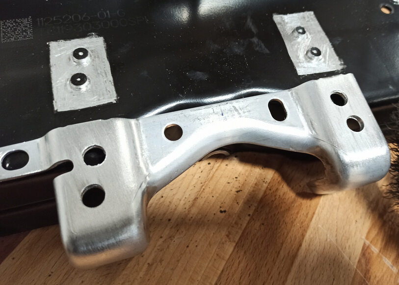 注Try the skid plate bracket on the HV battery and check that the flat surfaces fit snugly together.