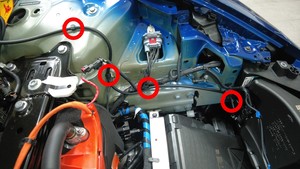 松开将清洗器软管固定到车身和清洗器储液罐的卡子(4 个)。