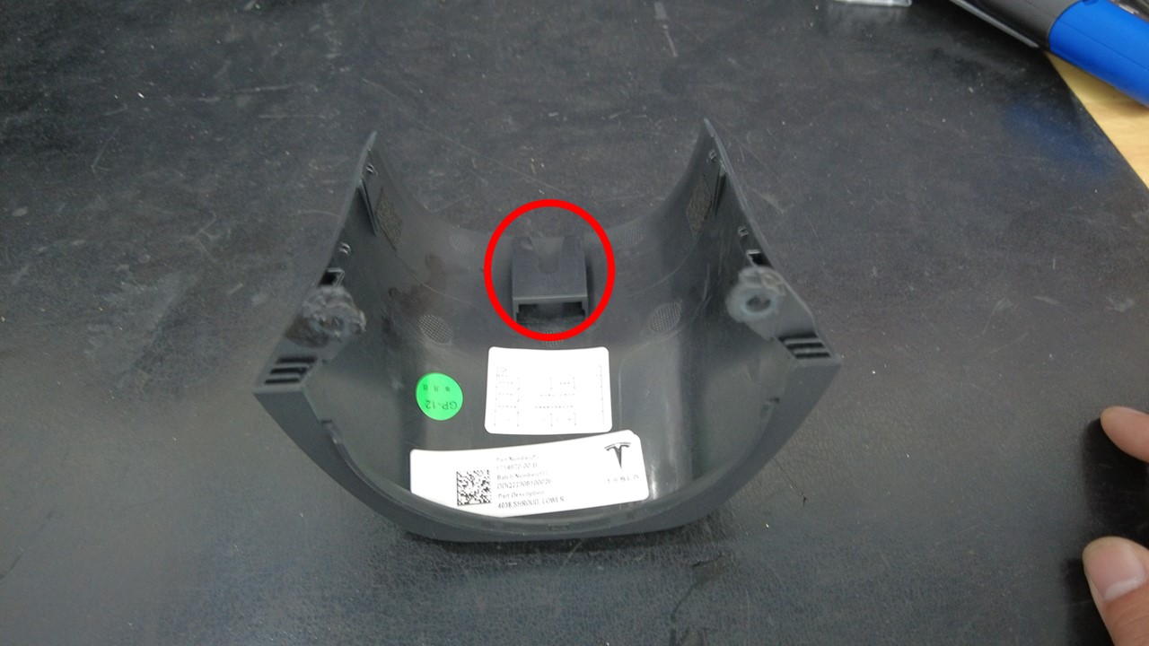 将下部护罩滑到转向柱上,确保卡入定位槽。