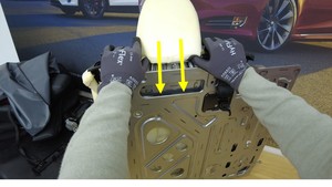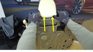 将第二排左侧座椅靠背泡沫安装到座椅靠背框架上。