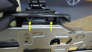 安装将第二排座椅靠背中央把手固定到座椅靠背框架的卡子(2 个)。
