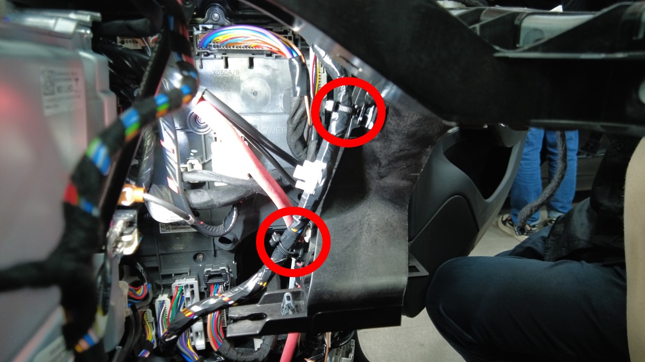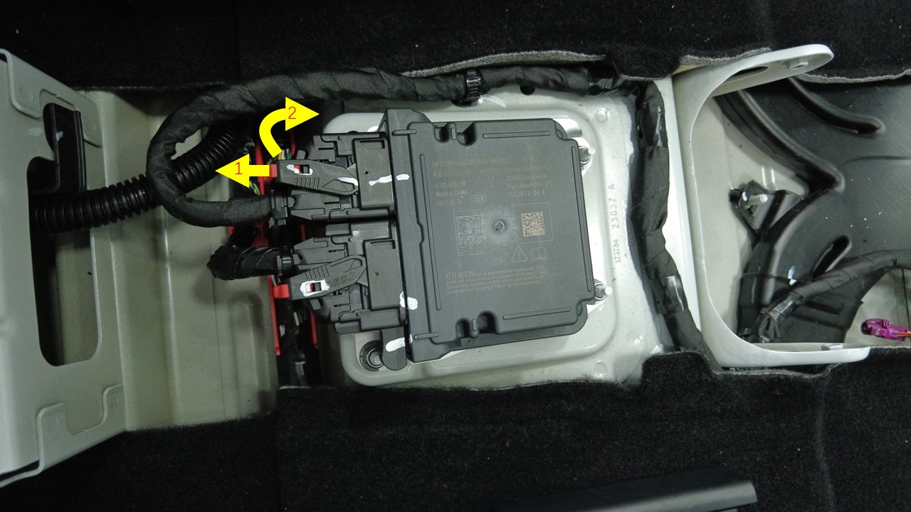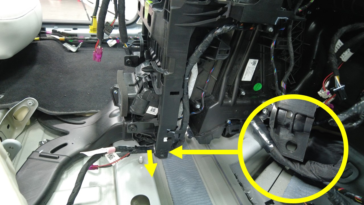 将仪表板线束安装到中控台底部,然后将其移动到一旁。