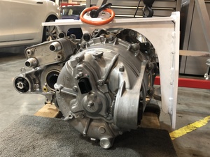- 将后驱动单元和发动机支架适配器降到板条箱上。