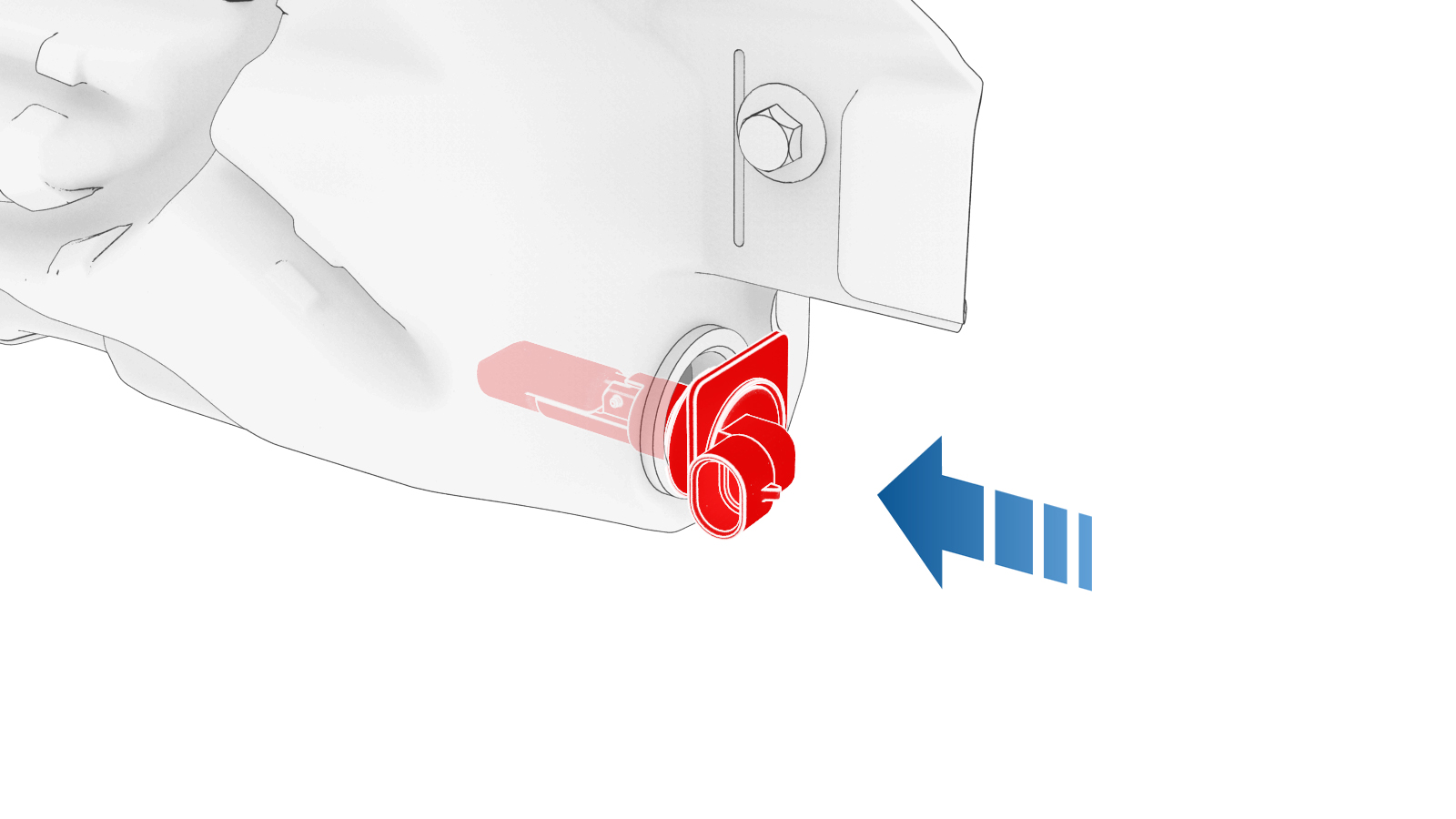 安装挡风玻璃清洗器液位传感器,注意传感器罩平整边缘应朝下,传感器连接器应垂直向后。