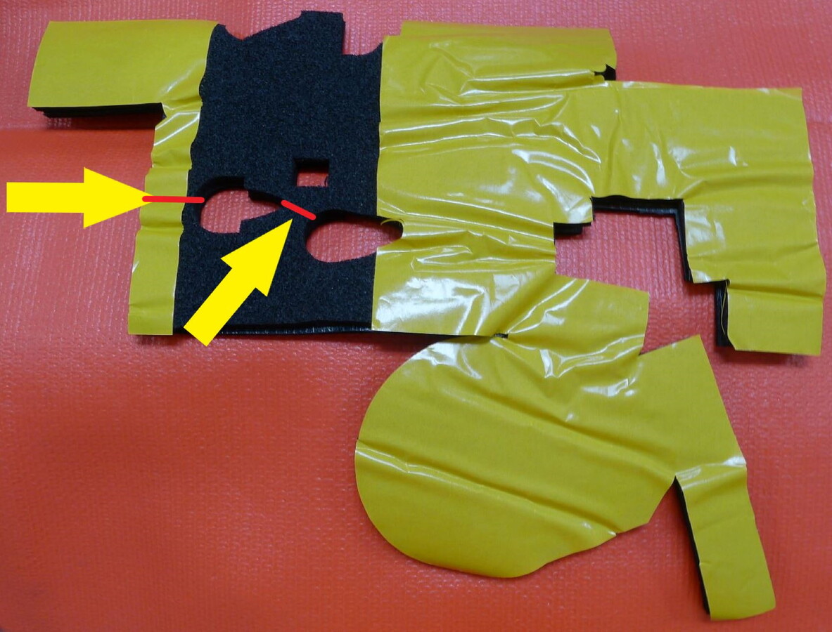 按红线所示在隔音毯上划出 2 个开口,使隔音毯与空调管贴合。