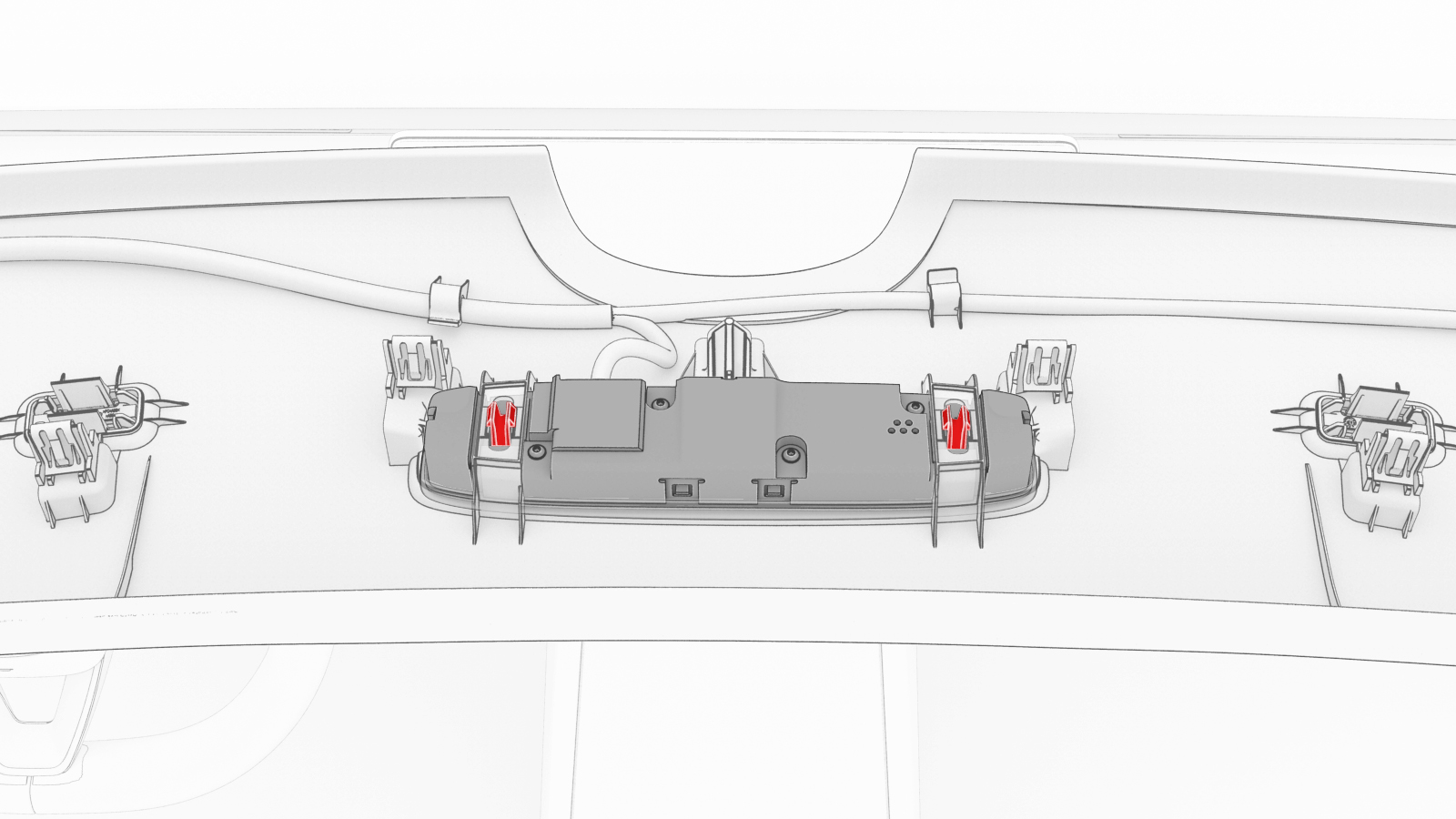 将前车顶控制台向上推进顶篷,然后紧固卡子(2 个)。