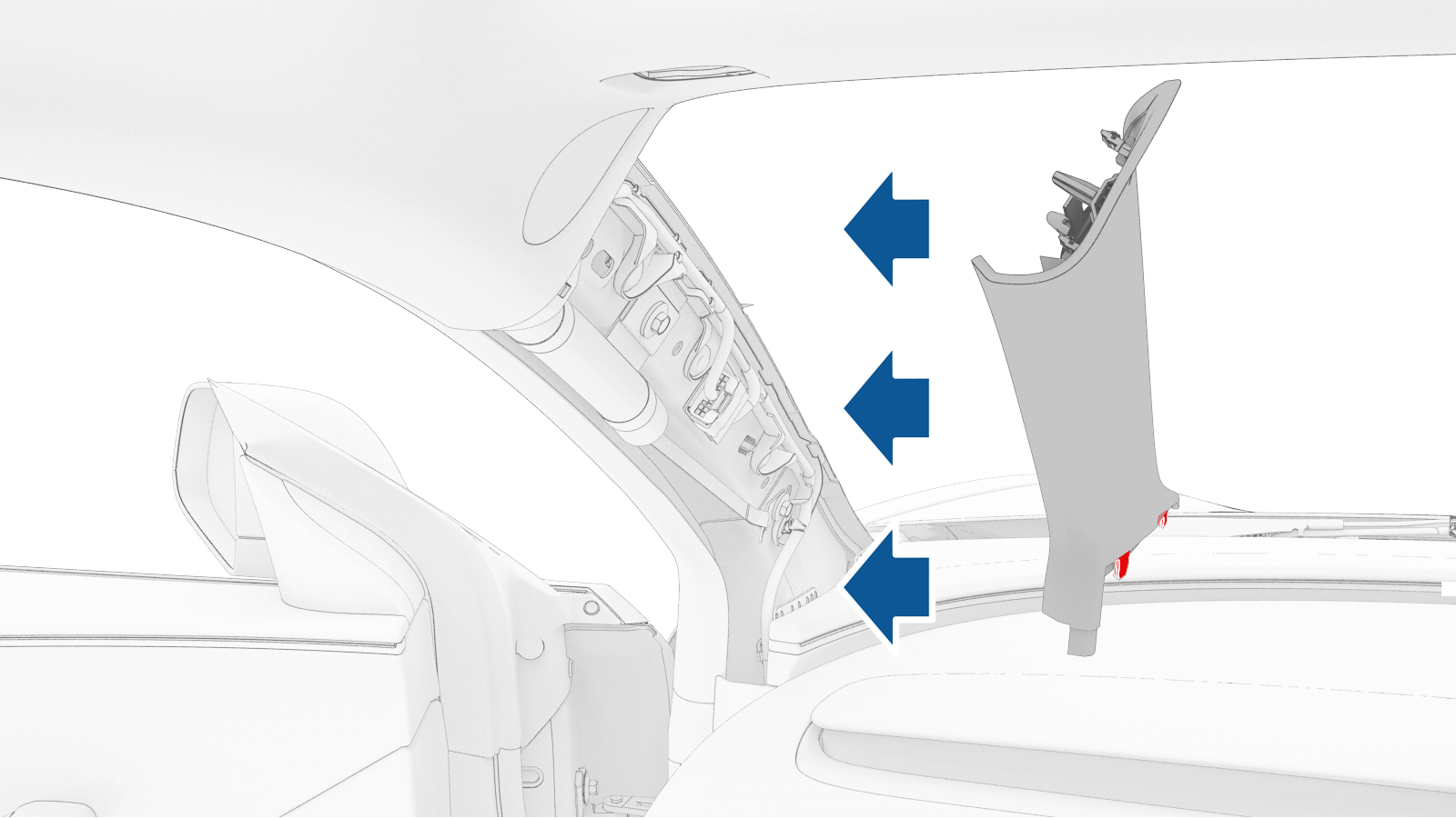 注请勿将饰板过度拉离 A 柱,因为此时系带仍处于连接状态。