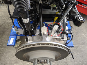 注请勿拆下半轴。从后侧下尾连杆上拆下左后和右后螺旋弹簧前,先停一下。