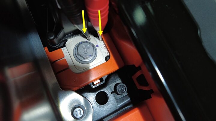 注Allow to 1 minute dry time,Use an IPA wipe to clean the HV mating surfaces of the shunt, busbar, and the pyrotechnic battery disconnect