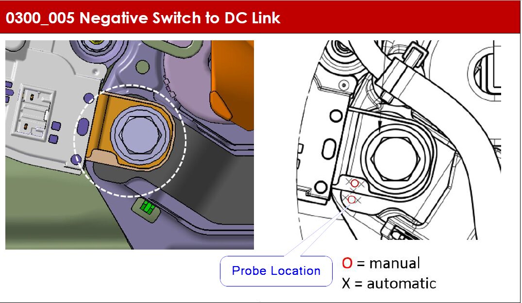Perform Hioki impedance test at HV joint of negative pack contactor to negative DC link busbar