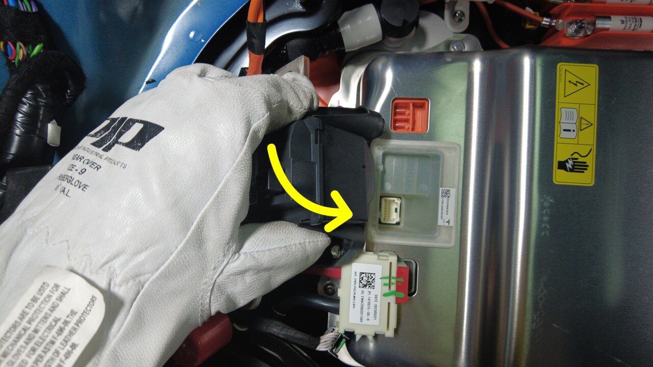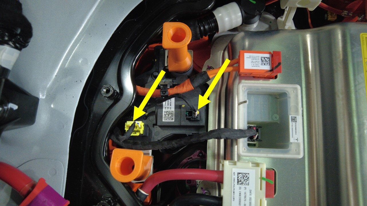 Disconnect ancillary bay harness connectors from positive pack contactor