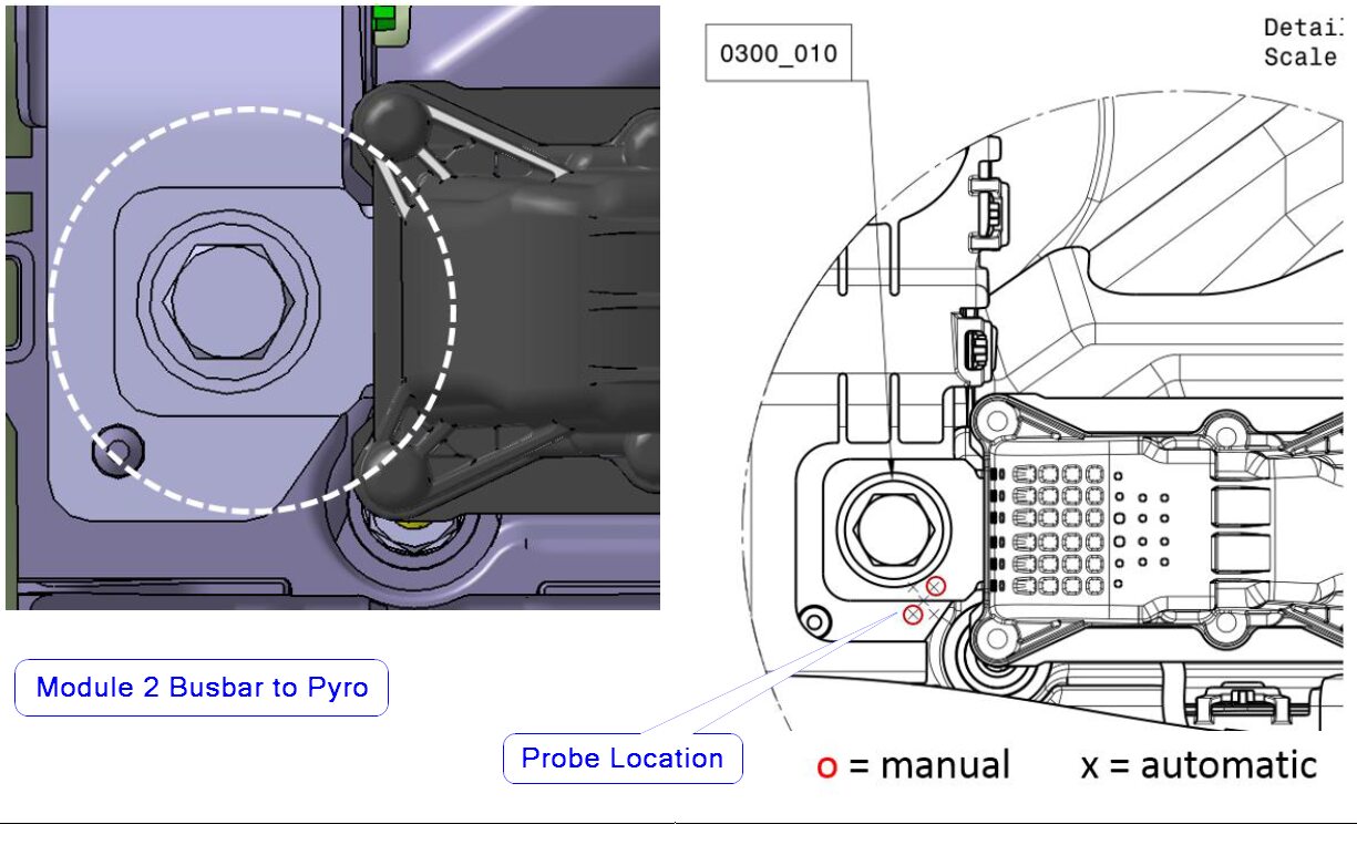 Perform Hioki impedance test at HV joint of positive pack contactor to DC link busbar