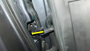 向内移动左前车门限位器,然后拆下左前车门限位器密封件。