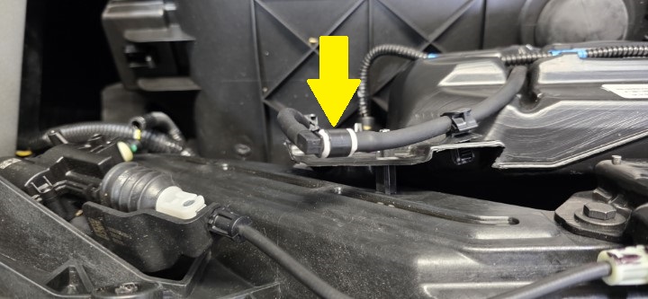 松开将清洗器软管固定到车身的卡子,然后断开纳米喷嘴,以分离清洗器软管。