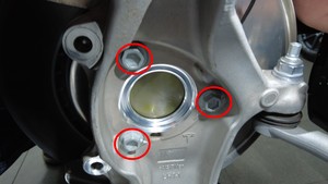 | 将左前轮毂轴承固定到转向节的螺栓(3 个) |