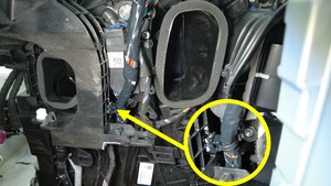 松开将仪表板线束固定到 HVAC 总成右侧的卡子。