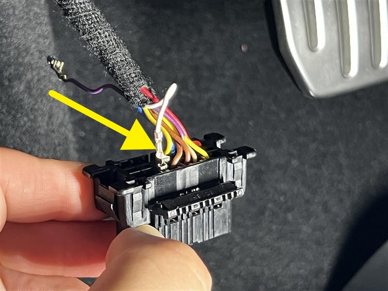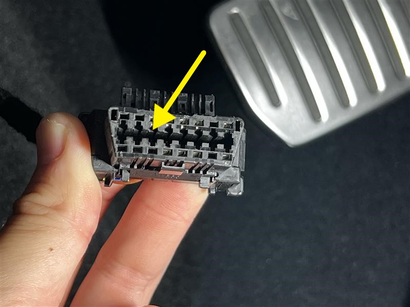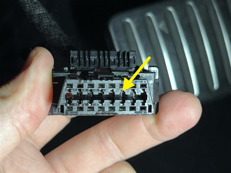 将针脚 11(白色)接线端子从车载诊断系统 (OBD) 连接器上拆下。