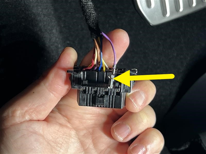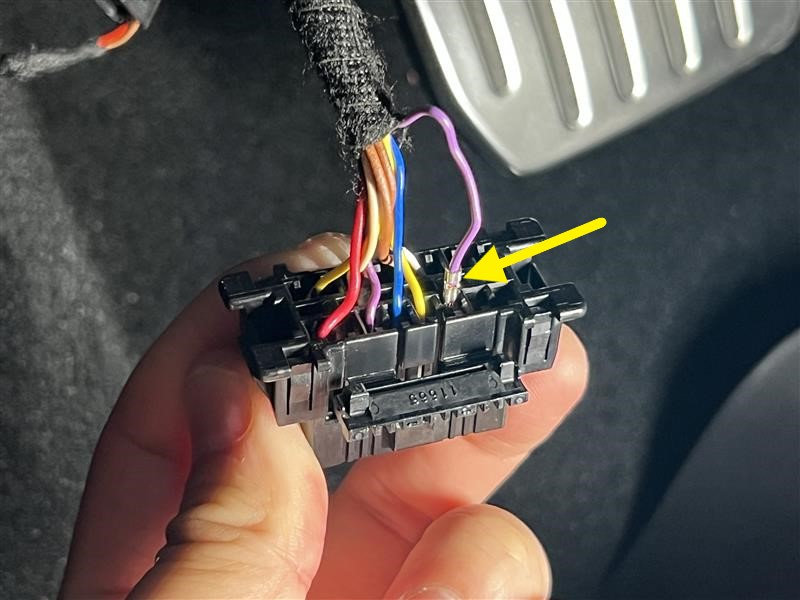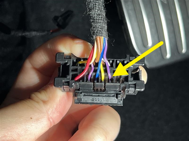 将针脚 3(紫色)接线端子从车载诊断系统 (OBD) 连接器上拆下。