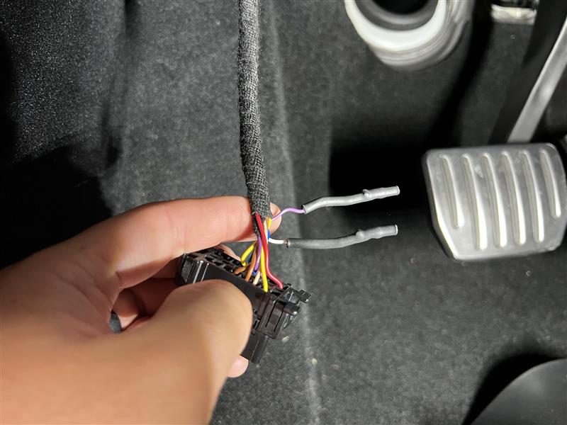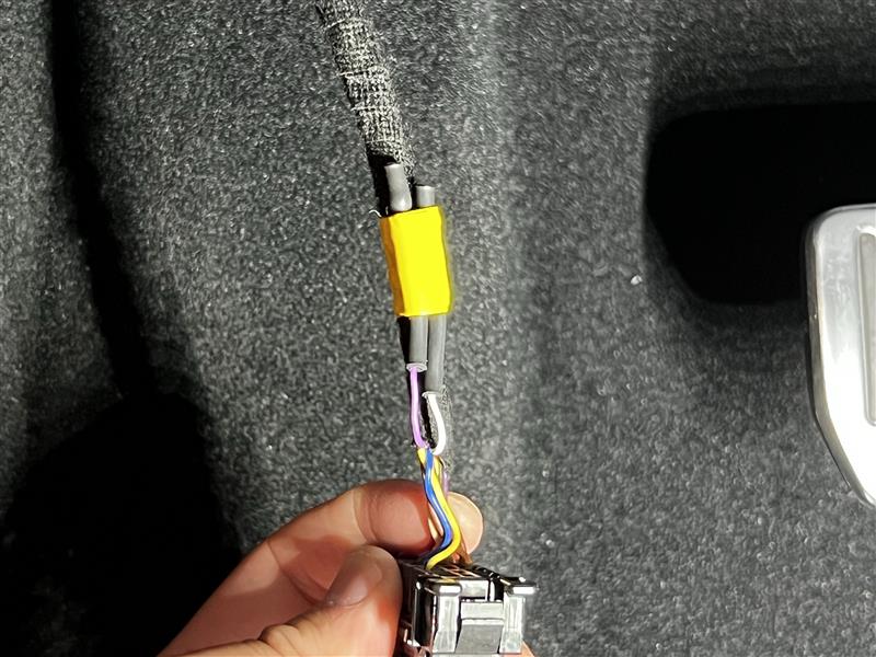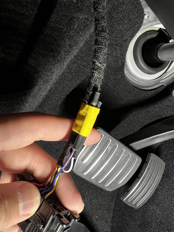 粘贴胶带,将处理好的针脚 3 和 针脚 11 接线端子紧固到车载诊断系统 (OBD) 电线线束丛上。