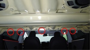 安装将杂物盘前部固定到车身的卡子(5 个)。