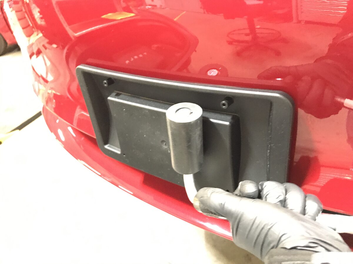 Clean surface area of front license plate bracket on front fascia.