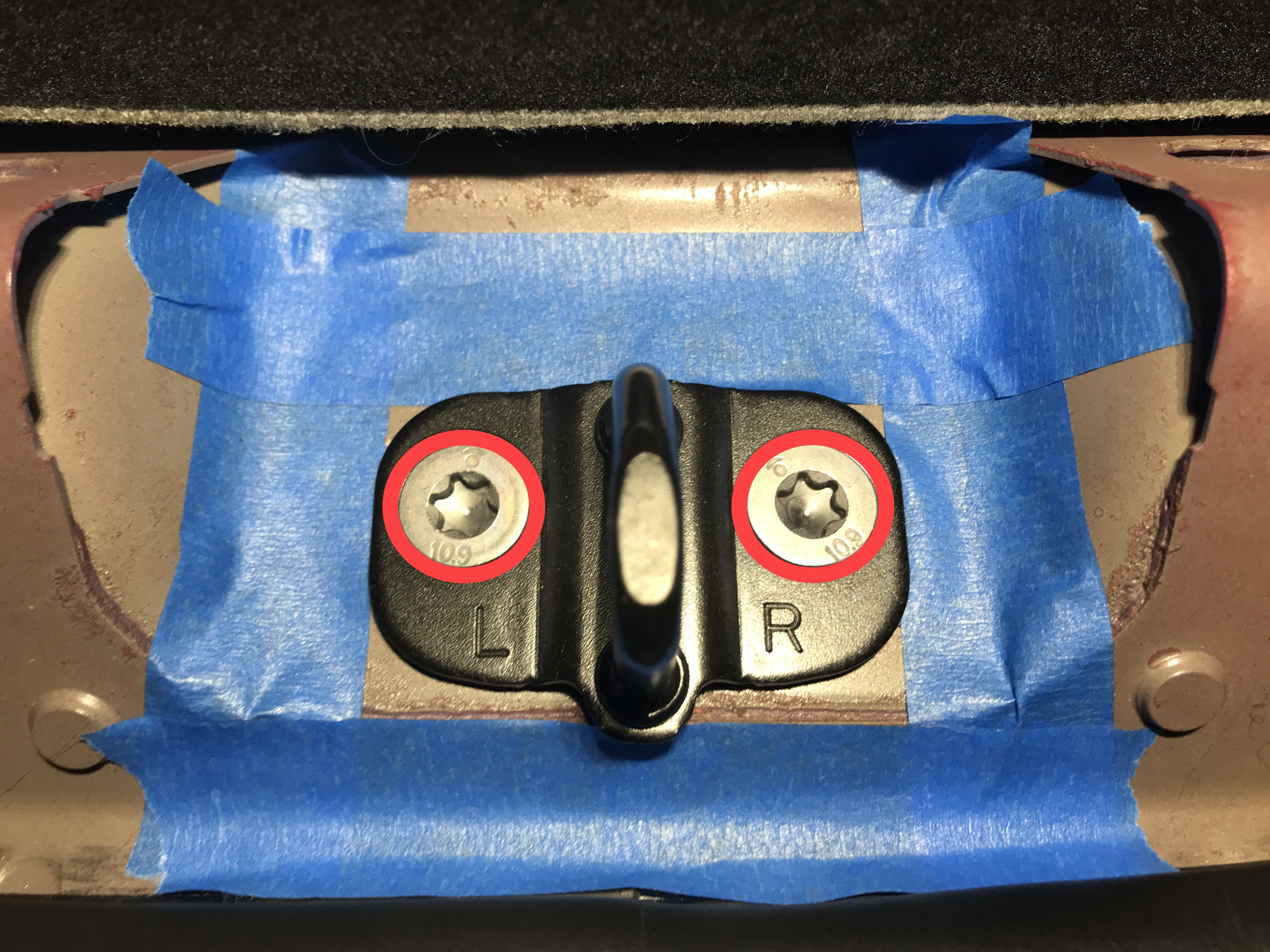 - 使用遮蔽胶带标记后备箱撞销的位置。