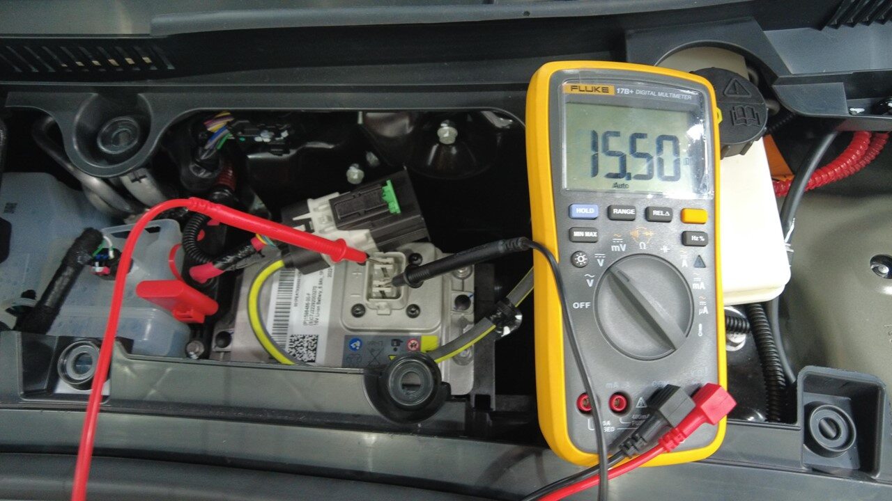 注Set multimeter to DC voltage, Confirm multimeter is properly measuring voltage by testing the 16v battery