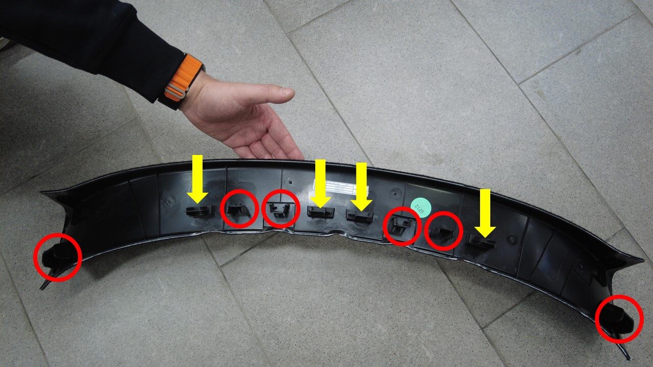 注14x clips, Hold rear wall of frunk to keep from flexing while engaging front clips