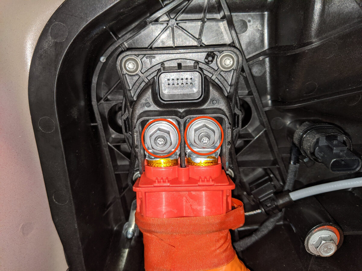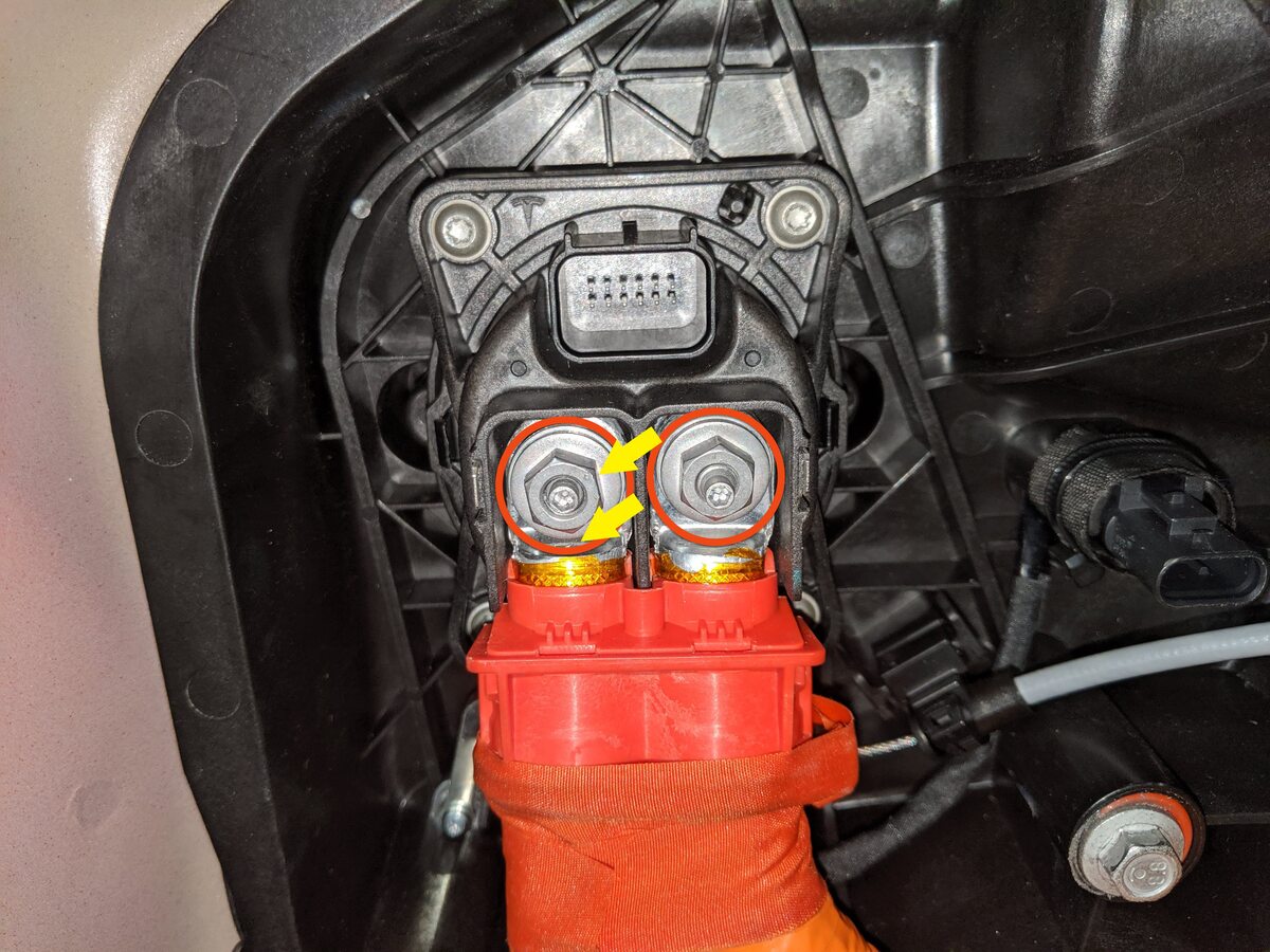 Perform Hioki resistance test at each HV joint from HV busbar lead to charge port stud