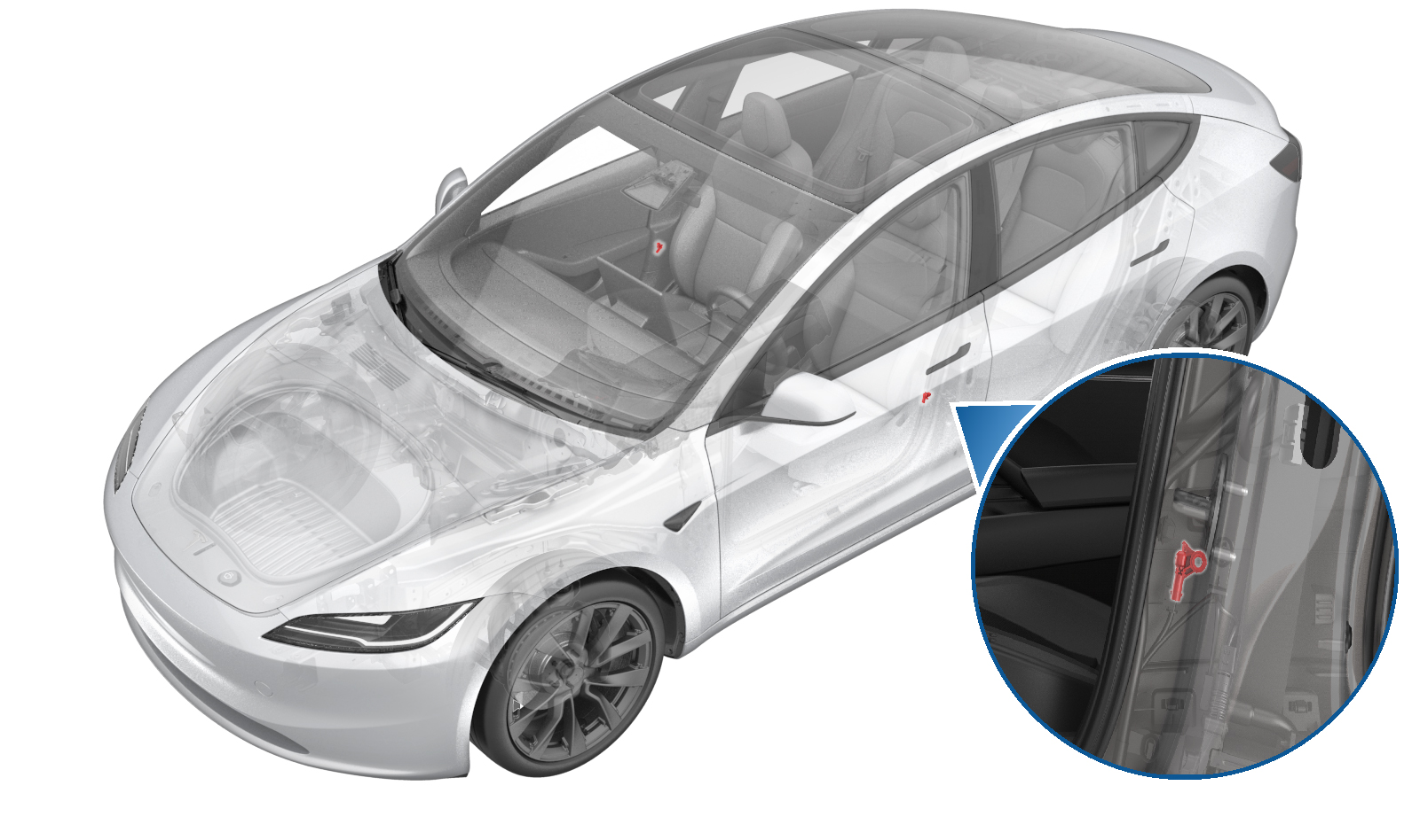 - 将电气连接器连接到左侧 B 柱碰撞加速计传感器。