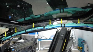 拆卸将右侧安全气帘固定到车身的螺栓(10 个)。