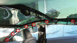 紧固将右侧安全气帘固定到车身的螺栓(10 个)。
